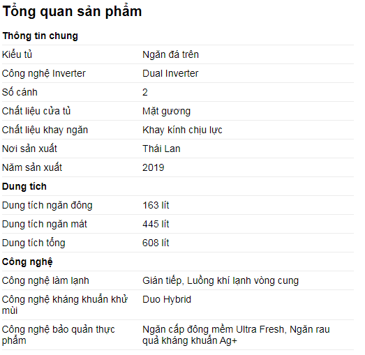 Tính năng nổi bật- Dual Inverter tiết kiệm điện 45% so với tủ lạnh thường nhưng vẫn đảm bảo hiệu quả làm lạnh, bảo quản thực phẩm tươi ngon.