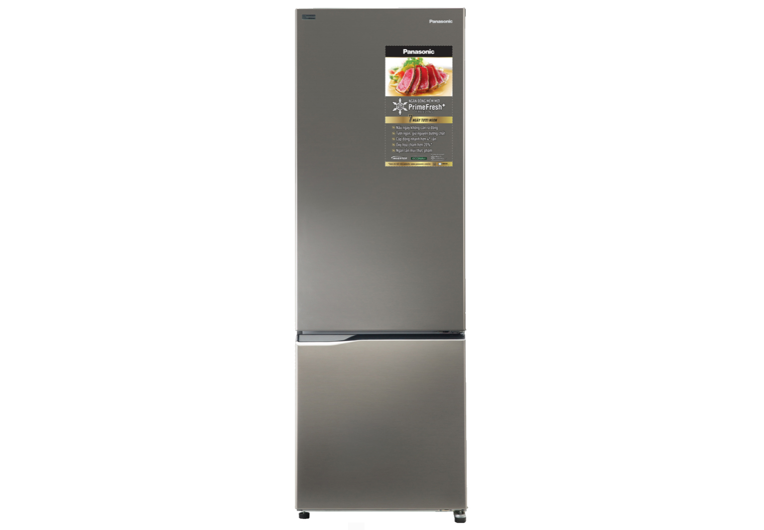 Tủ lạnh Panasonic Inverter 322 lít NR-BV360QSVN mang gam màu xám trung tính, thanh lịch. Bên cạnh đó, thiết kế ngăn đá bên dưới của tủ không chỉ mang lại vẻ đẹp mới mẻ, sang trọng cho không gian nội thất mà nó còn mang lại sự tiện lợi, giúp người sử dụng có thể dễ dàng lấy thực phẩm ở ngăn mát mà không phải khom cúi nhiều lần. Với mức dung tích 322 lít trong đó dung tích ngăn mát 237 lít, ngăn đông 85 lít, chiếc tủ lạnh này đáp ứng nhu cầu lưu trữ bảo quản thực phẩm cho gia đình có 4 - 6 thành viên sử dụng.