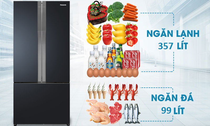 Tủ có dung tích dự trữ lên đến 494 lít phù hợp với những gia đình lớn có từ 4 - 5 thành viên sử dụng. Bạn có thể thoái mái trữ nhiều thực phẩm để làm phong phú hơn cho bữa ăn gia đình.