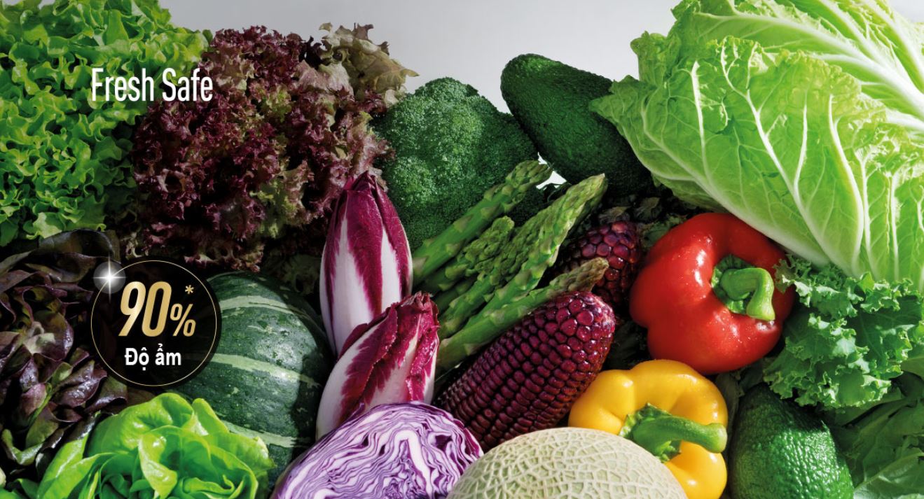 - Ngăn rau quả Fresh Safe giúp giữ độ ẩm của rau, củ, quả