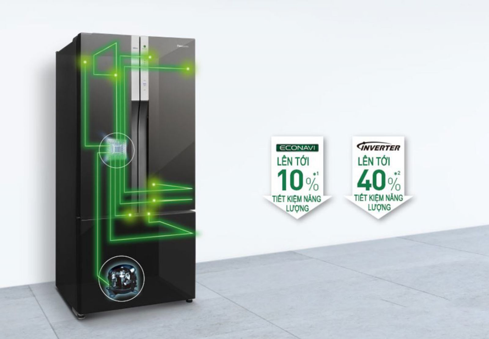Máy nén INVERTER điều chỉnh tốc độ quay của động cơ theo kết quả phân tích của bộ vi xử lý nhằm tối ưu hóa hiệu suất làm mát.
