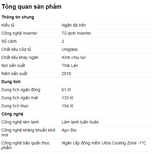 Dung tích 253 lít phù hợp cho gia đình 2 - 3 thành viên