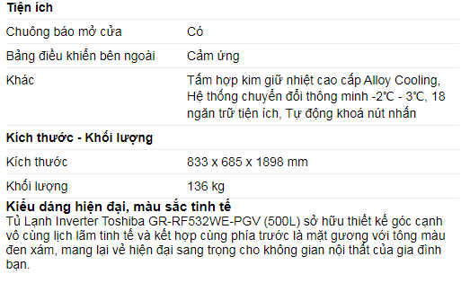 Với tổng dung tích 532 lít, tủ lạnh được chia thành 18 ngăn chứa lớn nhỏ khác nhau tạo cho bản cảm giác lưu trữ rộng rãi thoải mái đáp ứng nhu cầu trữ thực phẩm cho gia đình đông thành viên.