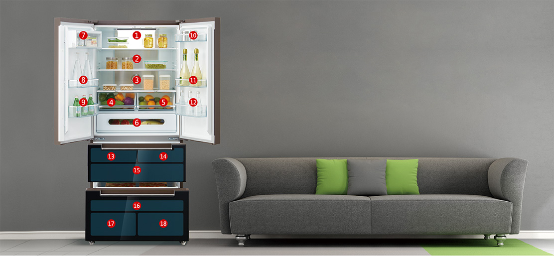 Tủ lạnh với 18 ngăn chứa dung tích khác nhau