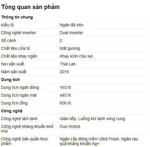 Tính năng nổi bật- Dual Inverter tiết kiệm điện 45% so với tủ lạnh thường nhưng vẫn đảm bảo hiệu quả làm lạnh, bảo quản thực phẩm tươi ngon.