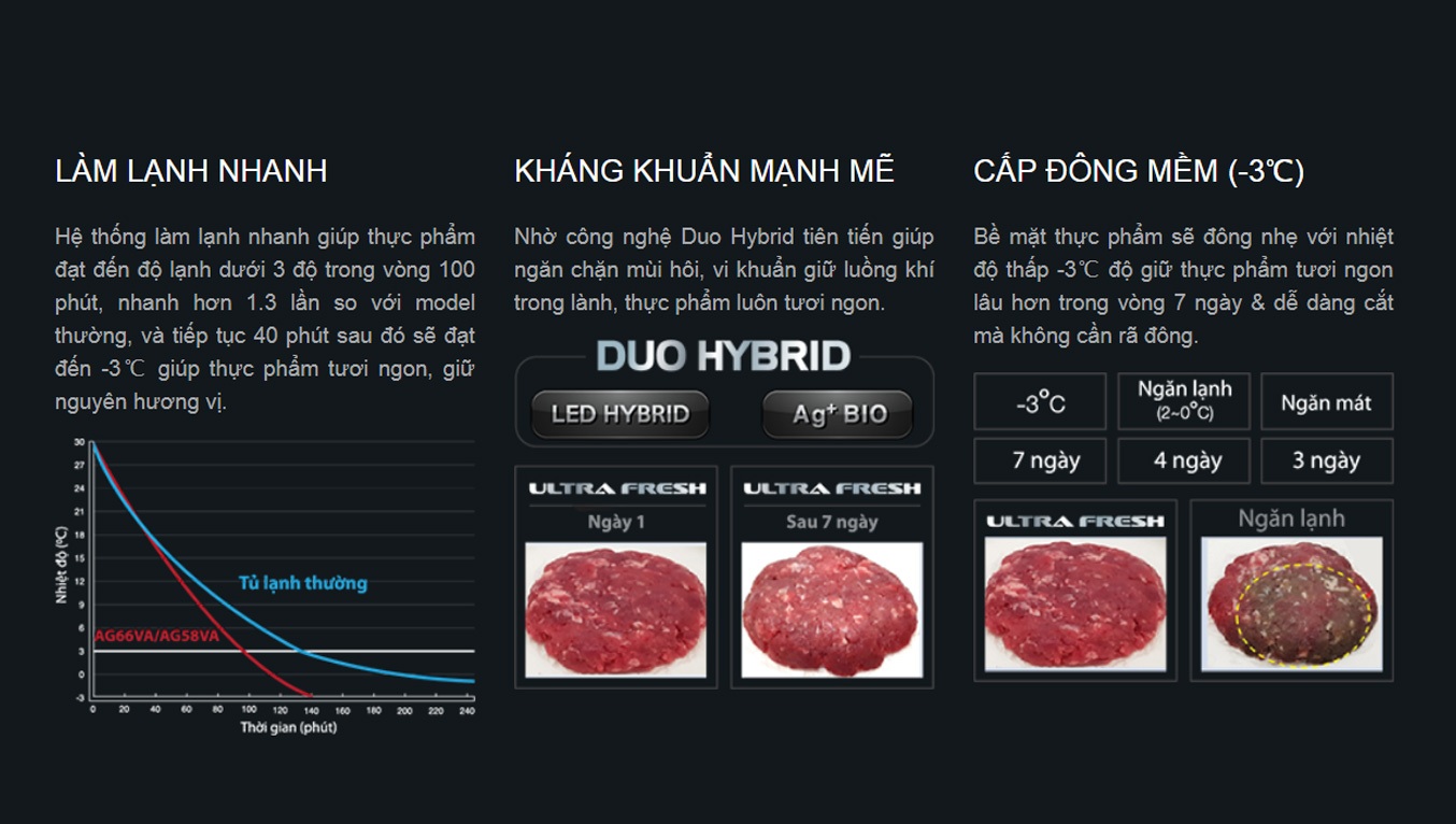 - Ngăn cấp đông mềm Ultra Fresh lạnh sâu -3℃ bảo quản thịt cá tươi ngon, không cần rã đông tiết kiệm thời gian.