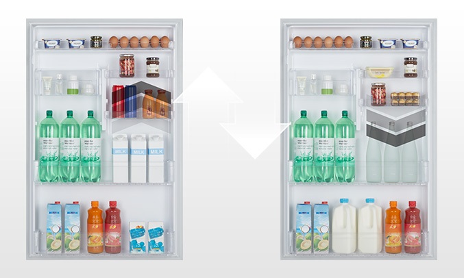 Dễ dàng thay đổi vị trí của các khay kệ để phù hợp với nhu cầu sử dụng của bạn. Tủ lạnh còn có ngăn đặc biệt với nắp đậy không chỉ để trữ thực phẩm mà còn để trữ những thứ khác như mỹ phẩm, dược phẩm…